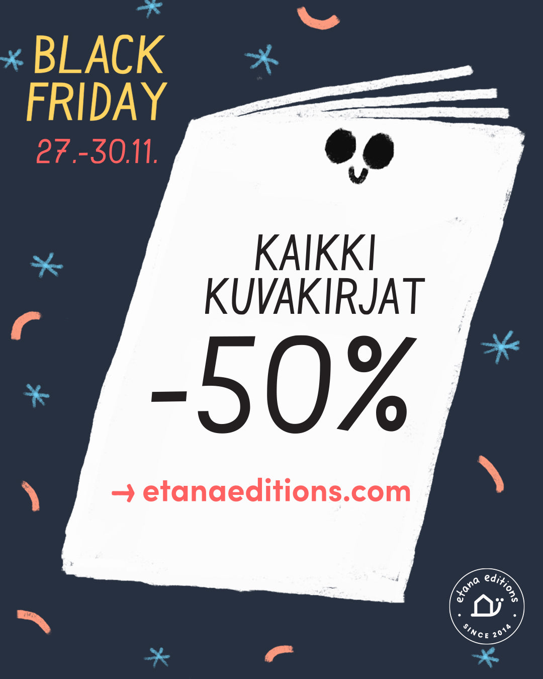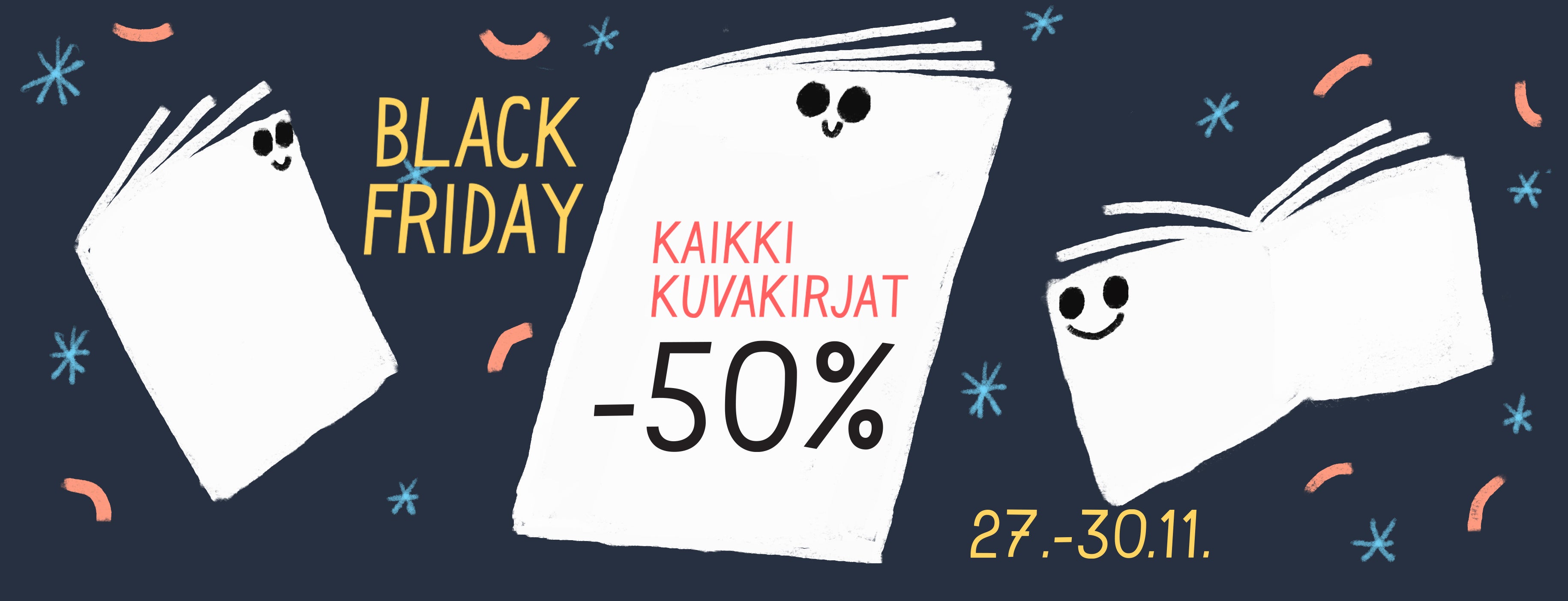 Torstaista sunnuntaihin (27.–30.11.) kaikki kuvakirjat -50 %! Kaupassa näkyvät hinnat ovat normaalihintoja. -50% alennus lasketaan automaattisesti kassalla.