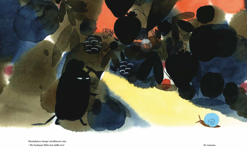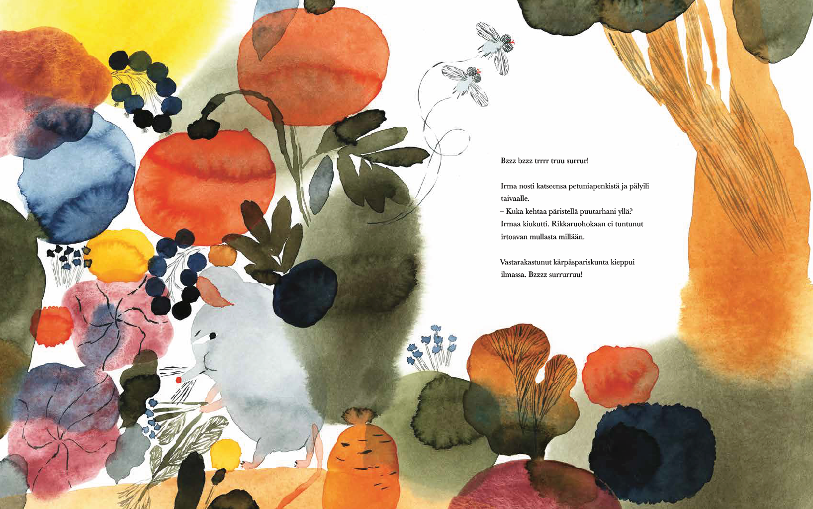 Aino-Maija Metsola's debut as a children's author deals with human emotions such as fear, selfishness, sharing and compassion as well as timely social issues in a subtle way suitable for small children. The story is hopeful and tinged with warm humor and her watercolor illustrations bring out insightfully the heat of summer bursting with delicious warm-toned colors.