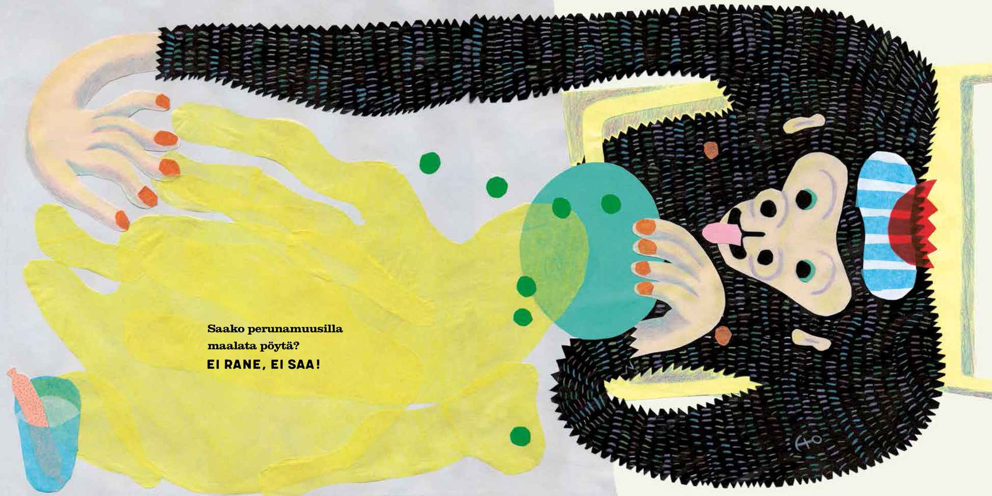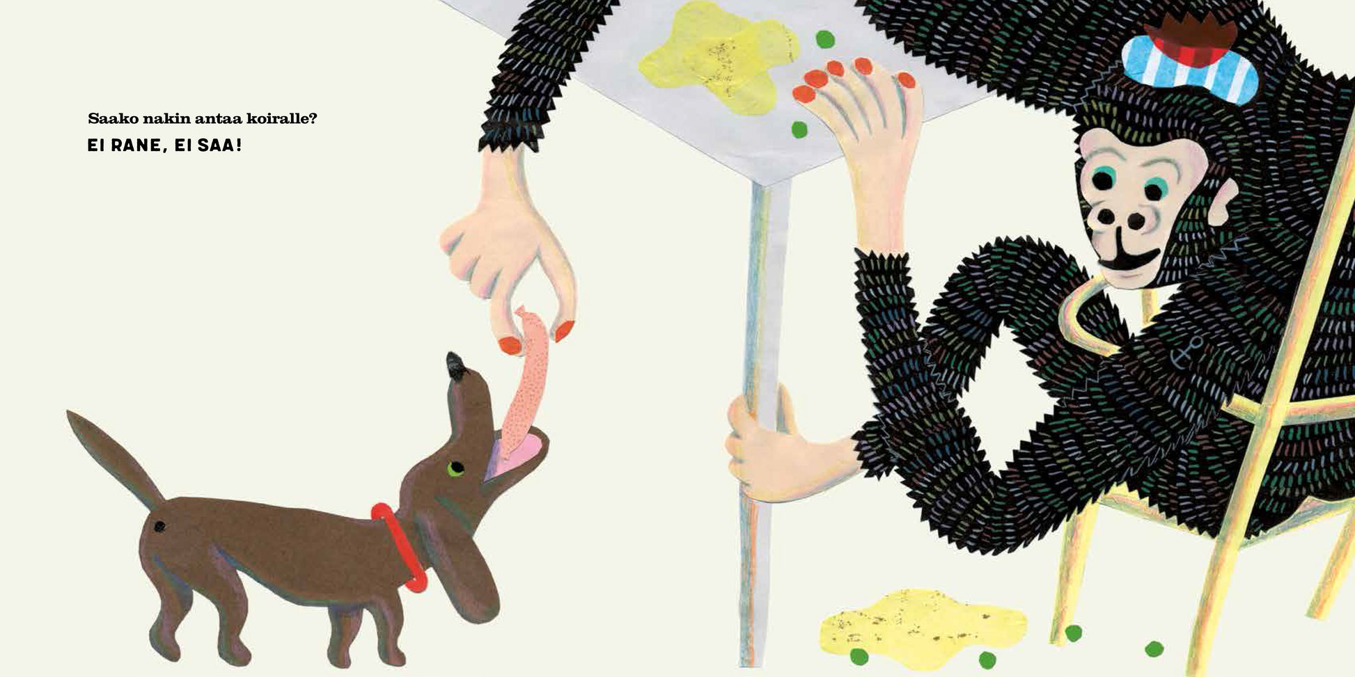 Kirjaa lukiessa lapsi saa asettua vanhemman saappaisiin ja tuntea olevansa paljon taitavampi ja osaavampi kuin hervoton Rane. Eihän nakkia voi uittaa maitolasissa! Tai tukkaa maalata perunamuusilla! Eikä tietenkään lautasta voi käyttää pyllynalusena! RANE, EI!