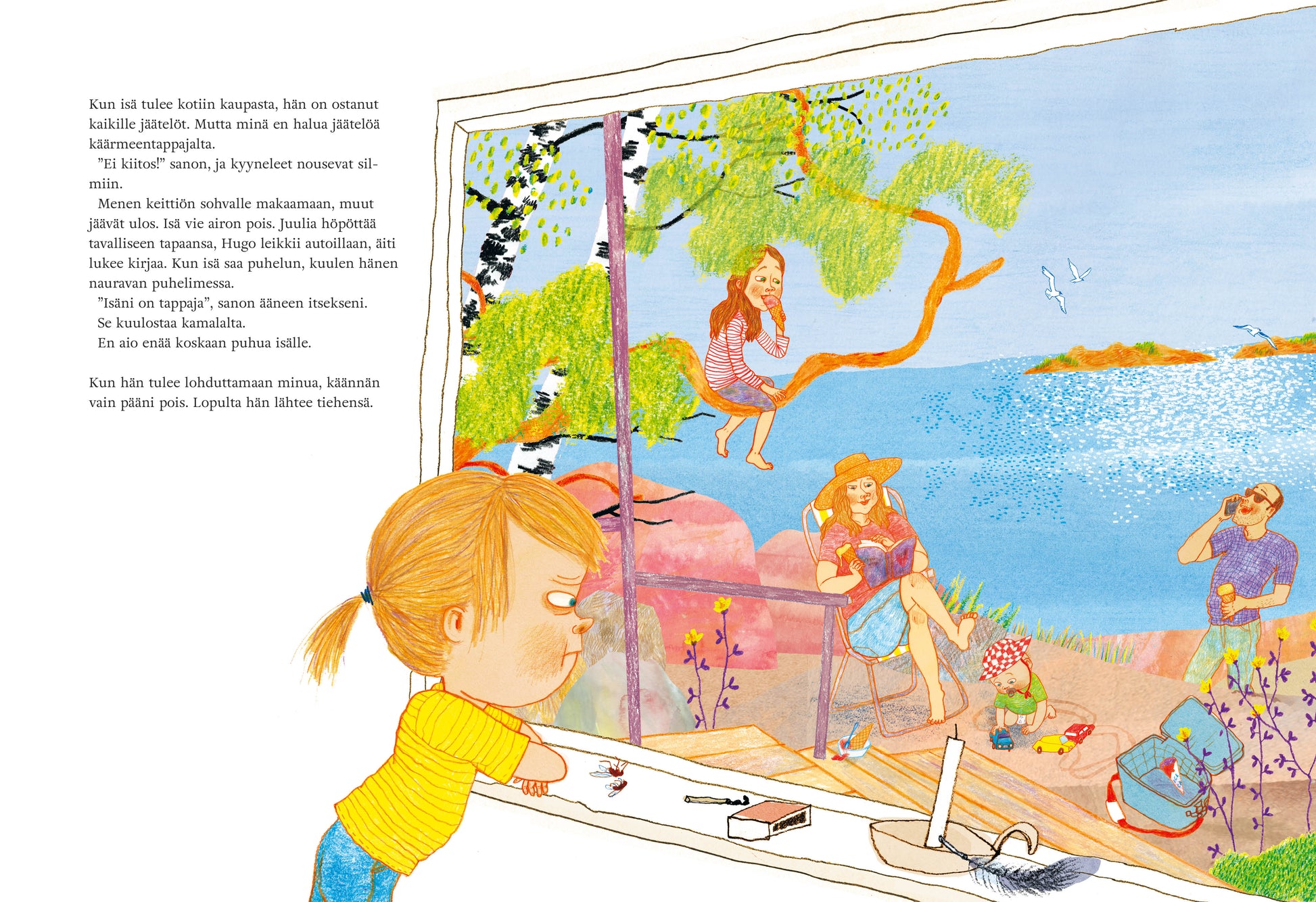 Sonck ja Lucander ovat yhdessä luoneet jännittävän ja lämpimän kirjan tunteiden käsittelystä - sekä lapsen sisimmässä että perhesuhteissa. Kuvakirjassa on arkirealismia, jolla on eksistentiaalinen ulottuvuus. Teksti ja kuva ovat täydellisessä tasapainossa ja ne kuvaavat täydellisesti kesäistä saaristoidylliä. - Hufvudstadsbladet