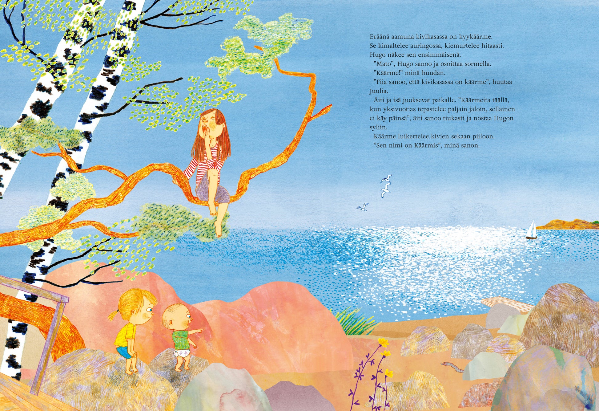 Fiia ja hänen perheensä ovat mökillä. Verannan lähellä asuu kyy. Pikkuveli Huuko on vain yksivuotias ja hyörii huolettomasti ympäriinsä. Mitä pitäisi tehdä? Isä yrittää pyydystää käärmeen ämpäriin, mutta ei onnistu. Fiia näkee, kun isä tappaa kyykäärmeen eikä voi antaa sitä anteeksi.