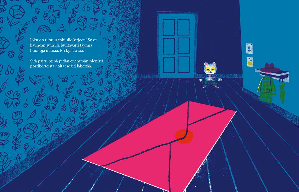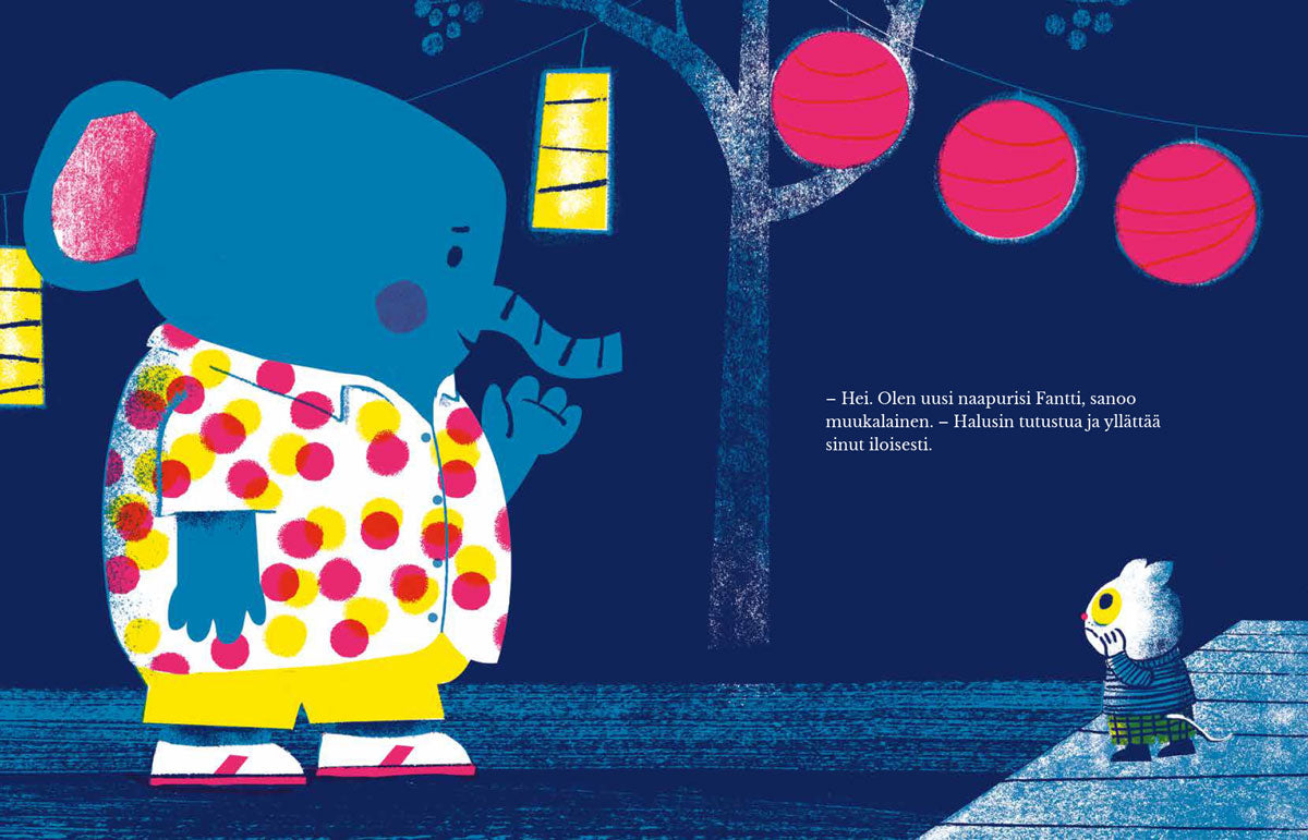 Hiiren luona tapahtuu kummia. Joku on tuonut suuren kirjeen, ripustanut iloisia pihavaloja ja kantanut kauniita kukkia hiiren kotiin. Mutta hiiri lukisi mieluummin postikortteja, istuisi pimeässä ja olisi ilman kukkia. Kuka kumma on tuo muukalainen, joka on sotkenut hiiren päiväjärjestyksen?
