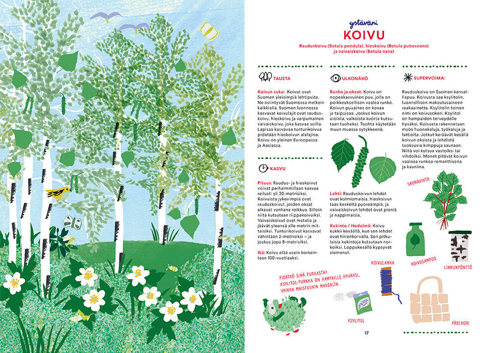 Ystäväni puu on lasten tietokirja, jossa tutustutaan yleisimpiin Suomessa ja muualla Pohjolassa kasvaviin lehti-, havu- ja hedelmäpuulajeihin. Kauniisti kuvitetun kirjan sivuilla hurmaavat muun muassa metsien koivu, lehmus, kuusi ja mänty sekä kotipihojen omena- ja kirsikkapuu. Oppaana puiden elämään metsissä ja kaupungeissa toimii kirjan sivuilla kurkisteleva Naava, joka houkuttelee luontoon ja innostaa lukijaa pohdintoihin, pieniin tehtäviin sekä muuhun mukavaan puuhaan puiden parissa. Sanasto kirjan lopussa syventää tietoa ja selittää käsitteitä helppotajuisesti. Ajankohtainen kirja muistuttaa miten tärkeitä puut ja metsät ovat ihmiselle.